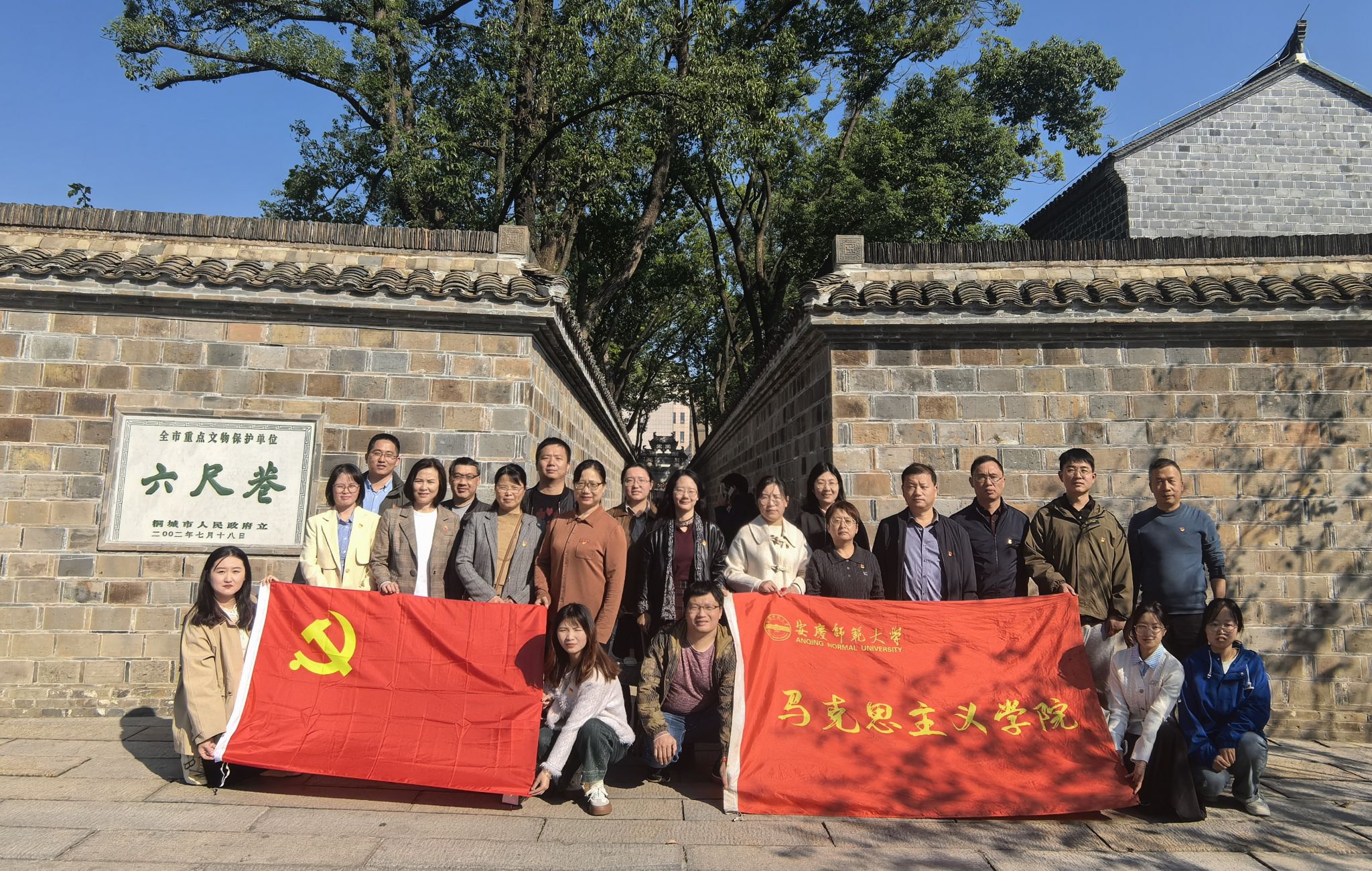 10月24日,公司党委理论学习中心组(扩大)赴桐城市六尺巷开展现场学习,深入学习贯彻习近平总书记在安徽考察时的重要讲话精神。公司班子成员、党支部书记、教研室主任、师生党员代表参加学习。