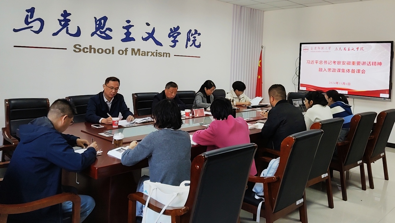 备课会上,与会人员集体学习了习近平总书记考察安徽重要讲话精神。“习近平新时代中国特色社会主义思想概论”教研室老师代表曲凯梁和金倩分别围绕习近平总书记考察安徽重要讲话精神融入课程第六章和第十一章进行了教学展示;“思想道德与法治”教研室老师代表徐辉围绕习近平总书记考察安徽重要讲话精神融入“遵守道德规范 锤炼道德品格”专题进行了教学展示。大家针对三位老师的备课内容,从融入内容、教学方法、教学素材等方面进行了深入探讨和分享交流。(撰稿:李文娜 陈道发 摄影:李文娜 编辑:盛佳 审核:余江舟 严仍昱)