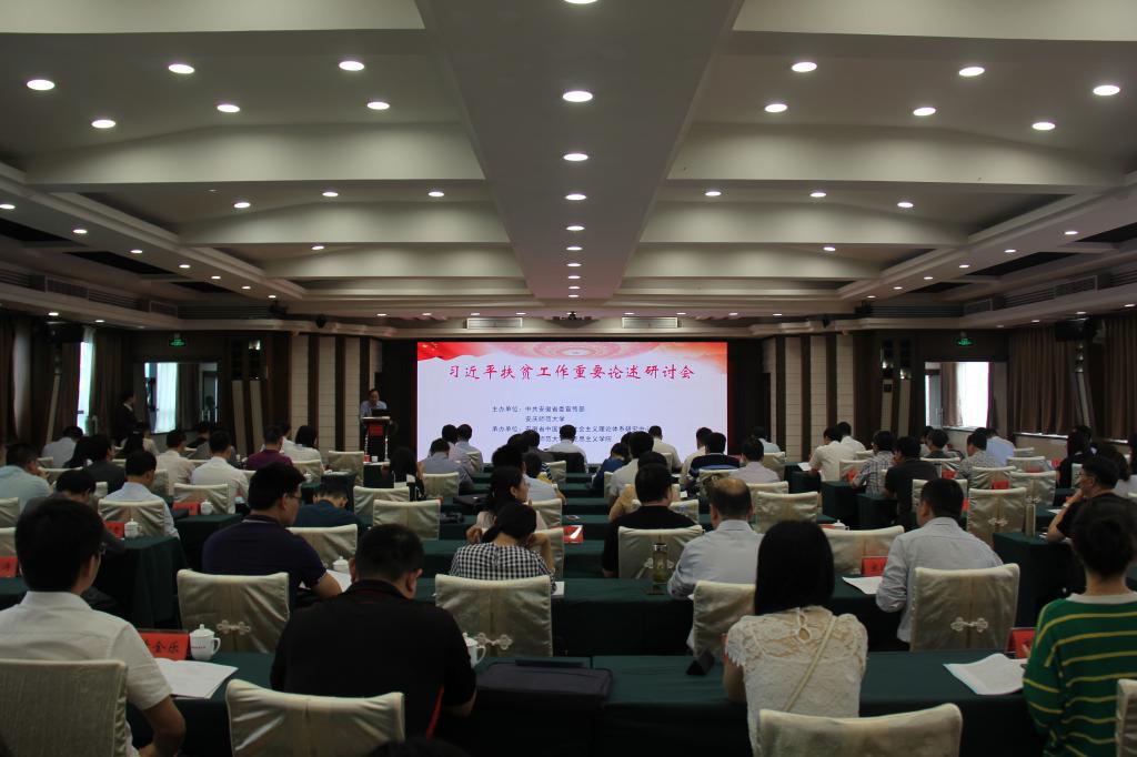 5月18日,由中共安徽省委宣传部和太阳成集团122ccvip联合主办,安徽省中国特色社会主义理论体系研究中心和公司太阳成集团122ccvip承办的“习近平扶贫工作重要论述”研讨会在安庆召开。来自省内外高校、省直机关、科研院所近百位专家学者以及公司太阳成集团122ccvip教师和研究生参加了会议。省委宣传部部务会成员、省委讲师团团长李兵,党委常委、副董事长汪时珍出席会议。上海财经大学太阳成集团122ccvip博士生导师汪青松教授作主旨报告。
