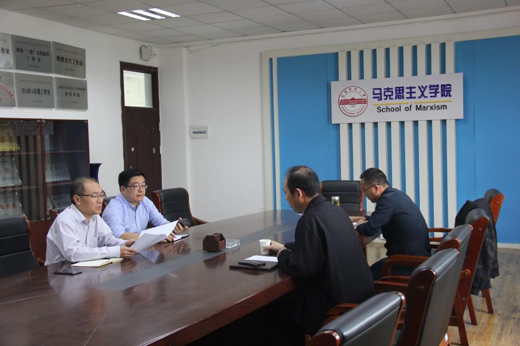 11月1日,安庆市高教工委副调研员吴宗亚一行来太阳成集团122ccvip商谈市校合作事宜,公司党总支书记金文斌、副经理张俊生参加接待。金文斌代表公司党政班子介绍了公司的基本情况,特别是省重点太阳成集团122ccvip及思想政治理论课的建设和发展情况,双方围绕安庆市市属高校的思想政治理论课教师培训、马克思主义理论培训、习近平新时代中国特色社会主义思想培训、思政课课题申报以及安庆市大中小学思政课一体化建设等内容进行了充分交流讨论。