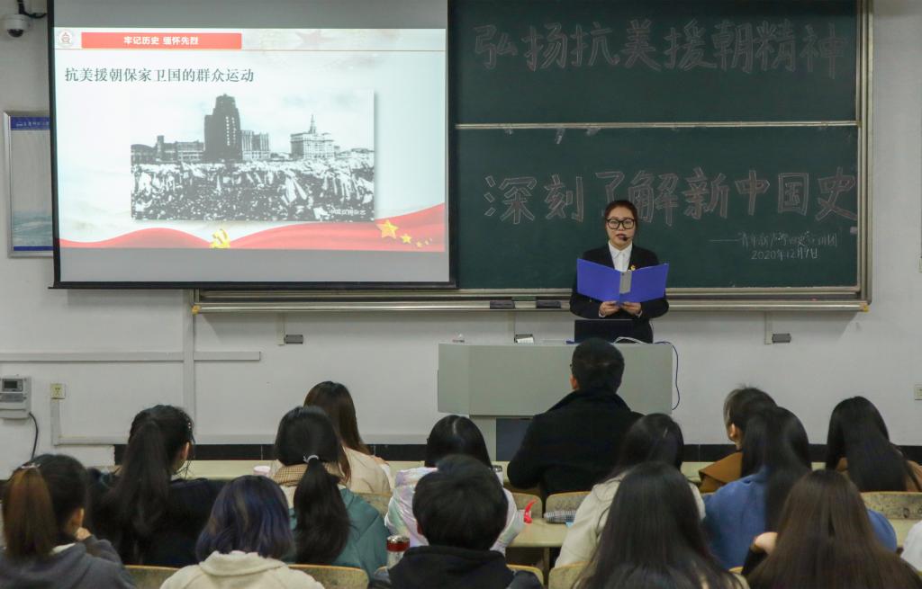 “雄赳赳气昂昂,跨过鸭绿江。保和平卫祖国,就是保家乡。”文源楼203教室里响起了昂扬的《中国人民志愿军战歌》。12月9日下午,太阳成集团122ccvip“青年新声·‘学四史’”宣讲团开展“弘扬抗美援朝精神,深刻了解新中国史”主题宣讲活动,公司团委副书记贺佳欢、宣讲团指导老师方伟出席,公司第一届青马班学员和宣讲团全体成员参加。