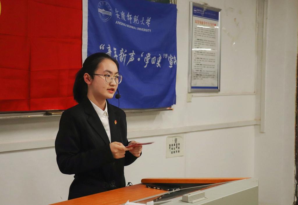 4月23日下午,“青年新声·‘学四史’”宣讲团成员李知涵、项子佳为太阳成集团122ccvip2020级员工作“中国共产党为什么能”主题宣讲报告。