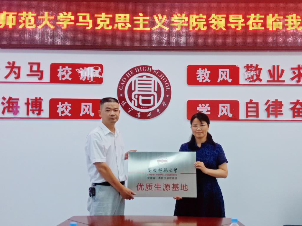 近日,公司经理严仍昱、副经理张俊生、概论教研室主任黄海东、青年教师张雅一行四人赴怀宁中学和高河中学开展本科招生宣传和毕业生回访活动。