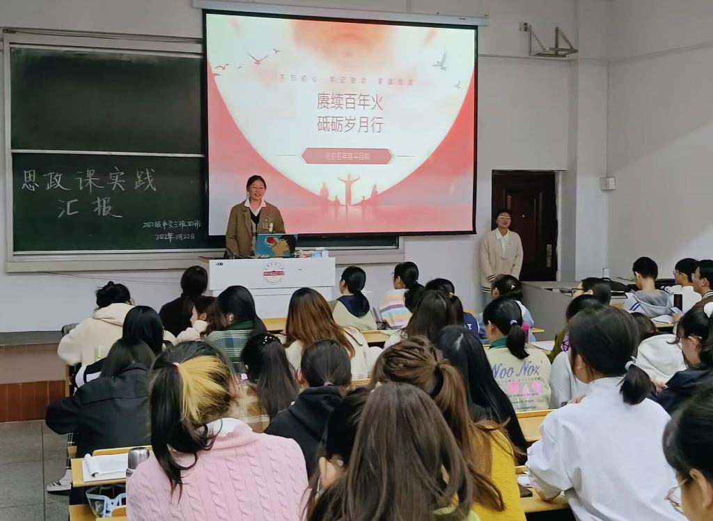 实践教学的前两周,同学们在老师的指导下,在各思政小组组长的主持下,深入学习党的二十大报告的主要内容并进行小组专题研讨,制作汇报课件。实践教学的第三周,各教学班级举行了实践教学成果汇报分享活动。“领悟伟大建党精神”、“践行绿色发展理念”、“实现中国梦,青春正当时”、“创新与传统齐飞,文化共时代一色”、“砥砺奋进二十大,不负时代写芳华”……各组的汇报内容具体深刻,汇报形式丰富多样,美观清晰的课件、联系实际的案例、生动形象的视频、激情飞扬的分享,总是迎来一阵阵掌声,同学们在热烈的课堂气氛中跟随汇报人多方面全方位地深入学习了党的二十大精神。2022级中文四班的王婧同学分享道:“这次的实践教学,充分发挥了我们的主动性,增强了我们的学习兴趣,在小组研讨、大班分享中,我对党的二十大精神的认识不断深化和提高。”