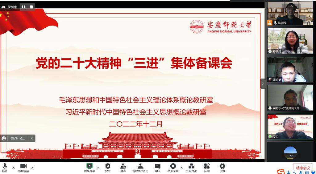 12月7日,公司毛泽东思想和中国特色社会主义理论体系概论教研室和习近平新时代中国特色社会主义思想概论教研室联合举办党的二十大精神“三进”集体备课会。教研室全体专兼职教师线上参加会议。