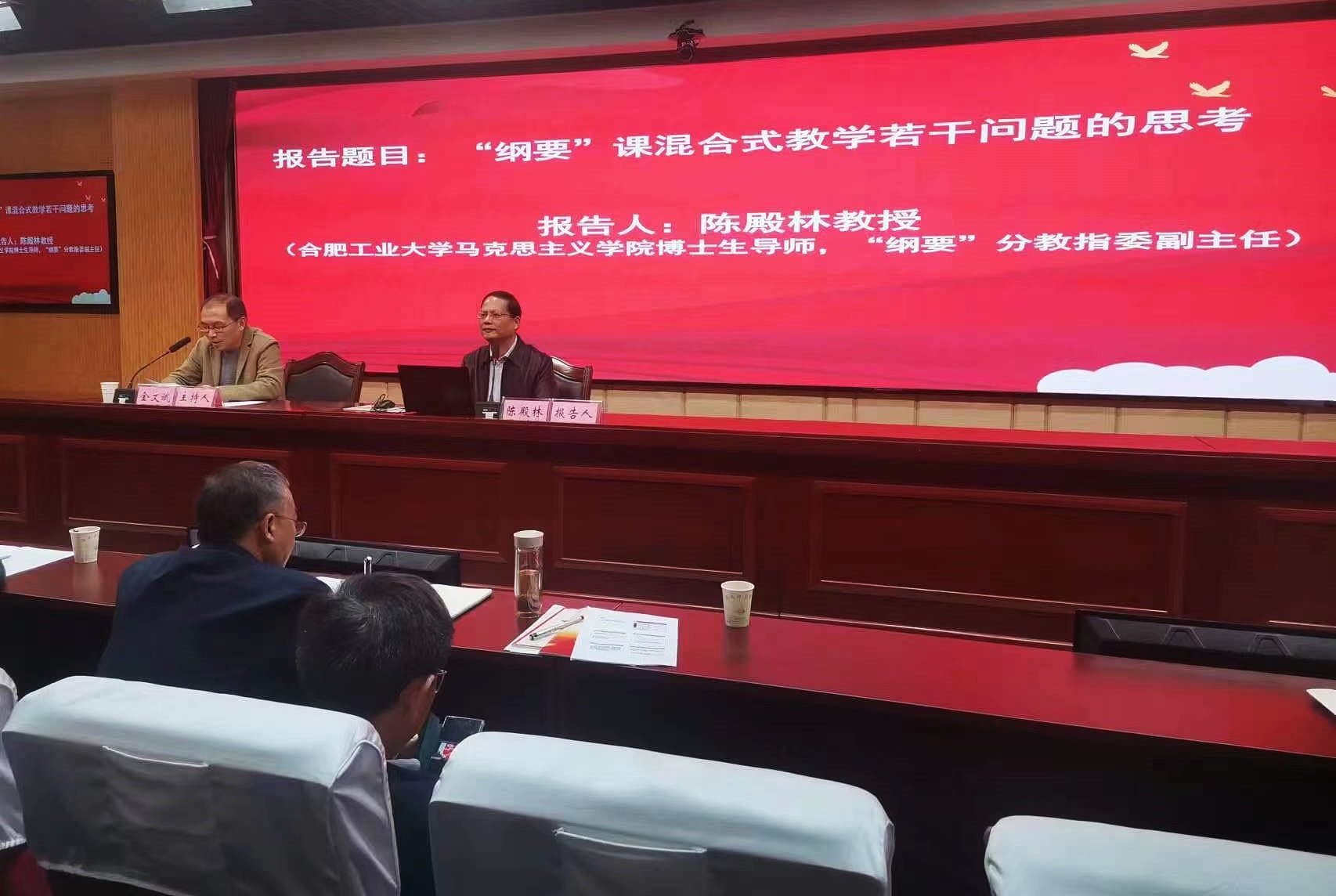 3月11日,安徽省高校思政课教指委“中国近现代史纲要”分教指委工作会议暨大中小学思政课一体化研讨会在淮南师范公司举行。“纲要”分教指委副主任金文斌教授参加大中小学思政课一体化研讨会,主持“思政课论坛”四场报告会,参观了该校“党史教育馆”,对“中国近现代史纲要”分教指委年度工作进行了交流研讨。(撰稿、摄影:陈安定 审核:余江舟 严仍昱)