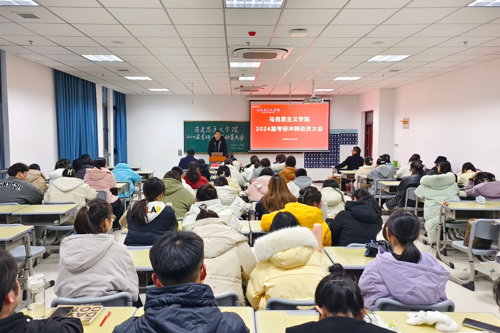 12月12日,公司在Q楼212教室举办2024届考研动员大会,全体考研员工、毕业班辅导员及团委负责人参加此次会议。公司副经理张俊生,公司教师檀传杰、张铭、张二远出席动员大会。