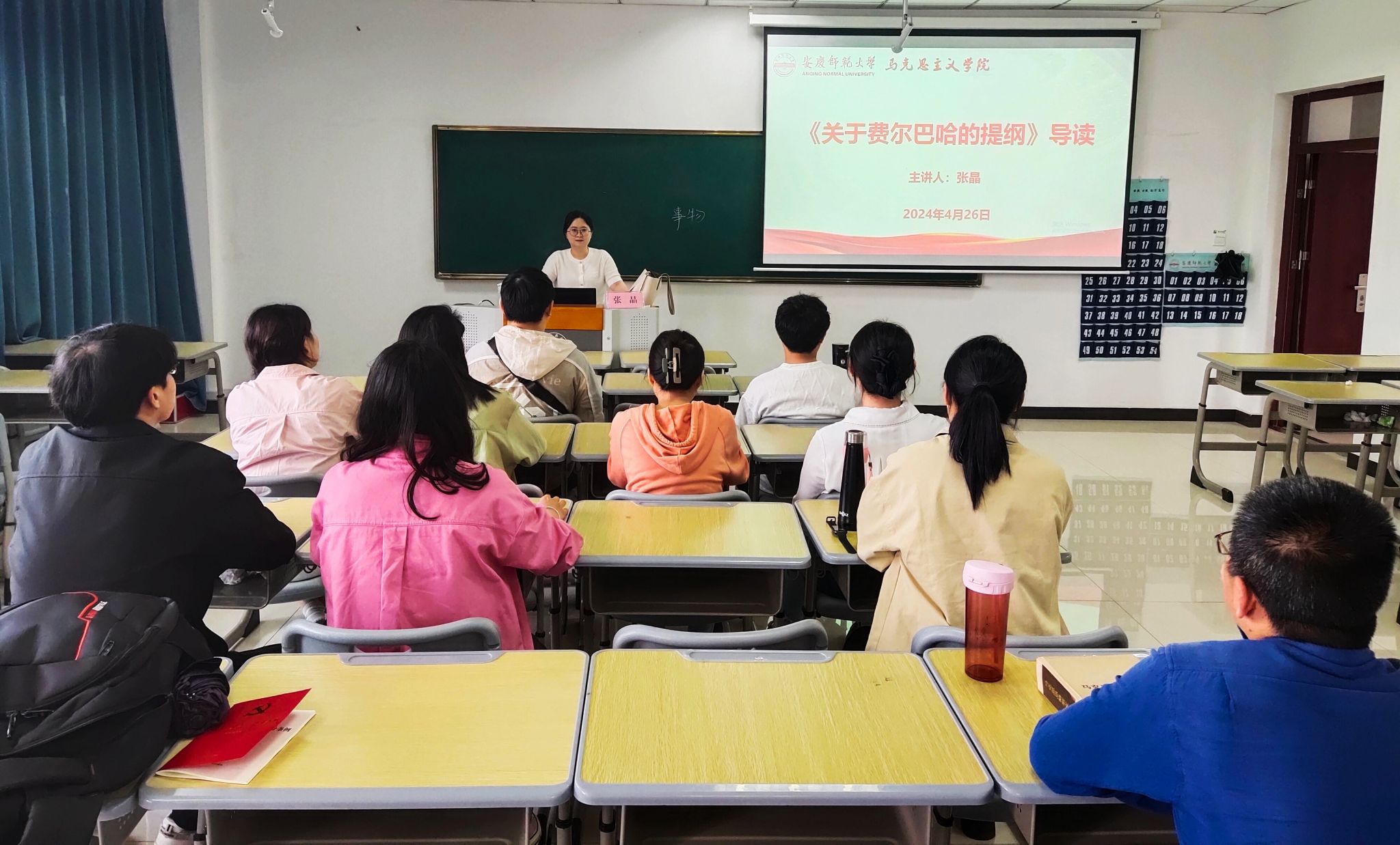 张晶围绕写作背景、具体内容、重大意义等方面进行了通俗易懂、深入浅出的解读。在逐条解读原文的过程中多角度展示了科学的实践观在马克思主义理论体系的重要地位,并着重分析了真理观、社会历史观、人的本质、哲学的功能等内容。在互动环节,与会教师围绕这一经典著作的相关内容交流学习体会,畅所欲言,讨论热烈。
