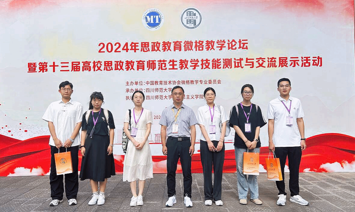 5月24日至27日,由中国教育技术协会主办、四川师范大学承办的第十三届“华文杯”全国师范院校思想政治教育专业师范生教学技能大赛在四川成都举行。公司选拔5名研究生、1名本科生参加决赛,2022级学科教学(思政)专业彭宏炜、夏巧云,2023级学科教学(思政)专业李博文、孙文星、许晓倩,2022级思想政治教育专业夏宇等6名同学分别荣获全国三等奖。