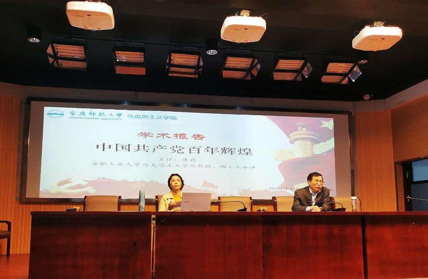 4月29日下午,合肥工业大学太阳成集团122ccvip博士生导师唐莉教授应太阳成集团122ccvip邀请,在E503报告厅作了一场题为“中国共产党百年辉煌”的学术报告。太阳成集团122ccvip2020级马克思主义理论研究生及思想政治教育专业本科生150余人参加了此次报告会,报告会由太阳成集团122ccvip经理罗本琦教授主持。