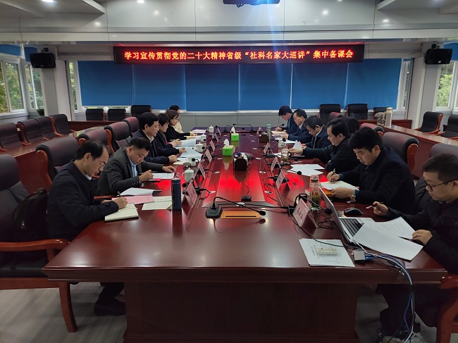 会议介绍了学习贯彻党的二十大精神“社科名家大巡讲”活动工作方案,传达学习了郑栅洁书记在全省领导干部学习贯彻党的二十大精神集中轮训班开班式上的讲话精神,集体学习了安徽省学习贯彻党的二十大精神宣讲提纲,并就如何扎实有效地开展好巡讲活动进行了研讨。