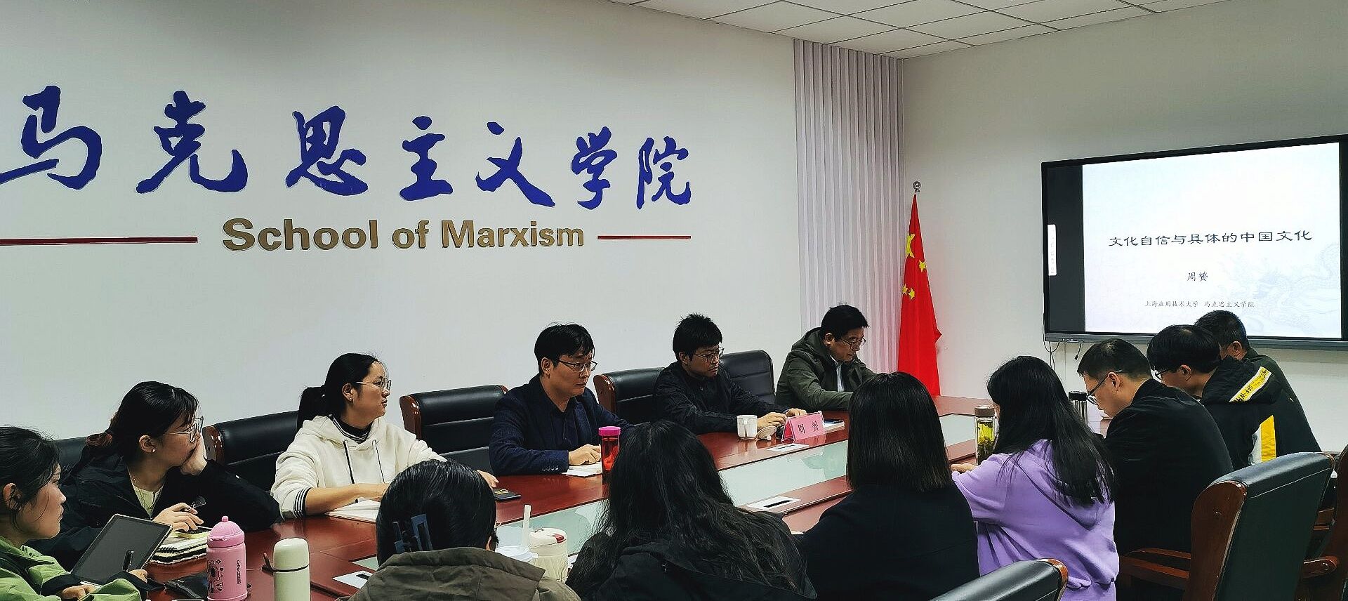 11月10日,上海应用技术大学太阳成集团122ccvip副经理、硕士生导师周贇应邀做客第四期“青马讲坛”,作题为“文化自信与具体的中国文化”的学术讲座。讲座由胡朝阳博士主持,公司部分青年教师和硕士研究生参与学习和交流。