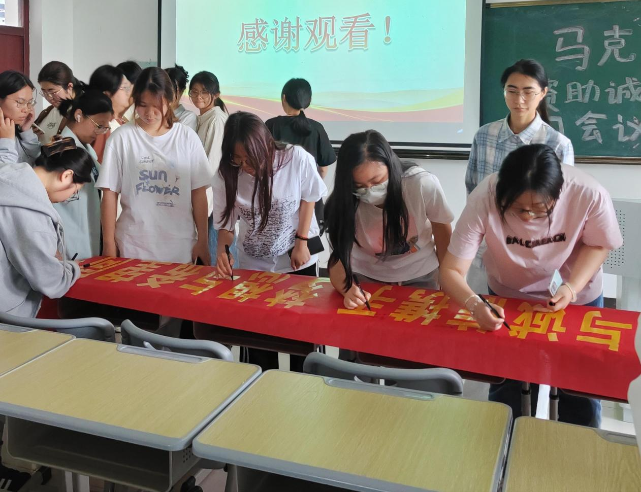主持人、思想政治教育专业2024级延乔班潘薪竹详细讲解了国家及公司的奖学金、助学金、助学贷款和勤工助学等项目的申请条件、评审流程及资金发放等实施细则。讲解结束后,参会人员依次有序上台,郑重签名,并表示,将廉洁诚信做合格老员工。