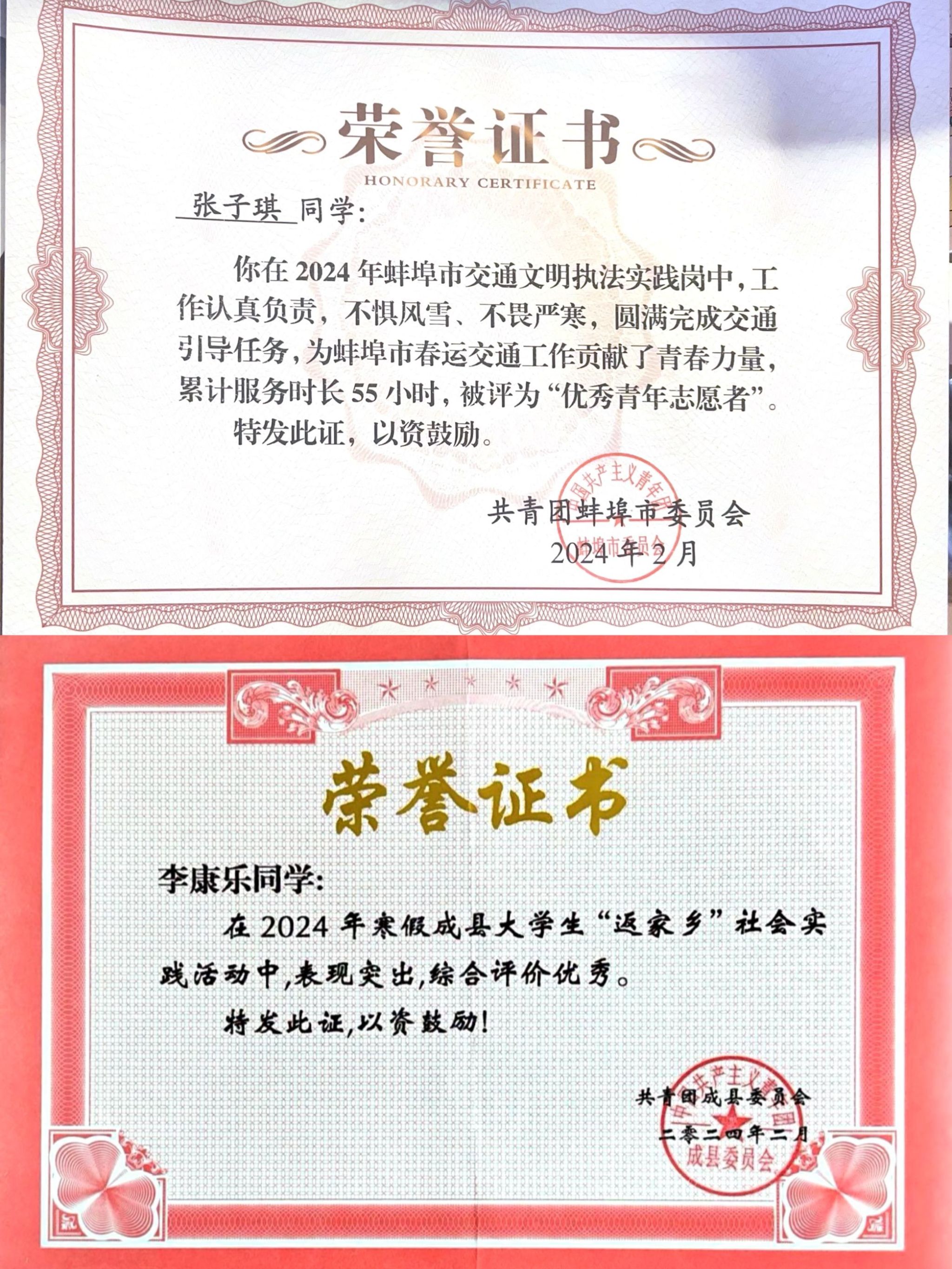 寒假期间,2023级思想政治教育专业延乔班共18人次参加,占班级人数的64.28%。思想政治教育专业2023级延乔班李玉婷参加了返乡潮高铁站服务志愿活动与社区服务,她在谈及本次活动中说到,“这次实践活动为我们青年创造了一个更深入理解社会、服务社会的平台,作为一名思想政治教育专业的员工,我会将本次的收获与所学专业知识融合,在未来为更多人提供更优质的帮助,为家乡和社会发展贡献力量。”思想政治教育专业2023级延乔班张子琪主动报名参加了由共青团蚌埠市委员会、蚌埠市交通运输局联合举办的蚌埠南站交通执法实践活动。通过寒假的“返家乡”社会实践活动,不仅增长了知识、提升了能力,更重要的是增强了对家乡的归属感和对社会的责任感,也丰富了个人志愿服务经历。