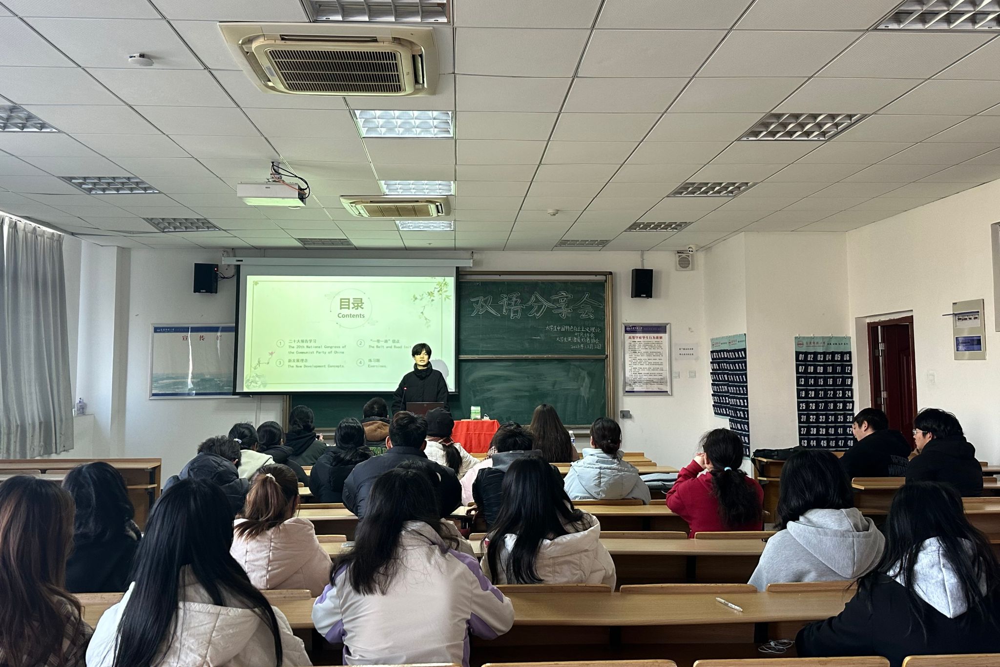 12月2日,老员工中国特色社会主义理论研究协会与老员工英语爱好者协会在外国语公司316教室举办双语分享会,本次分享会近100人参与。