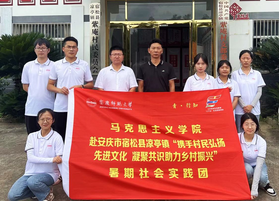 近日,“携手村民弘扬先进文化,凝聚共识助力乡村振兴”暑期社会实践团全体成员前往安庆市宿松县凉亭镇紫庵村进行实践调研。调研工作在凉亭镇党委委员段举和凉亭镇紫庵村党支部书记段贺军的大力支持下顺利进行。