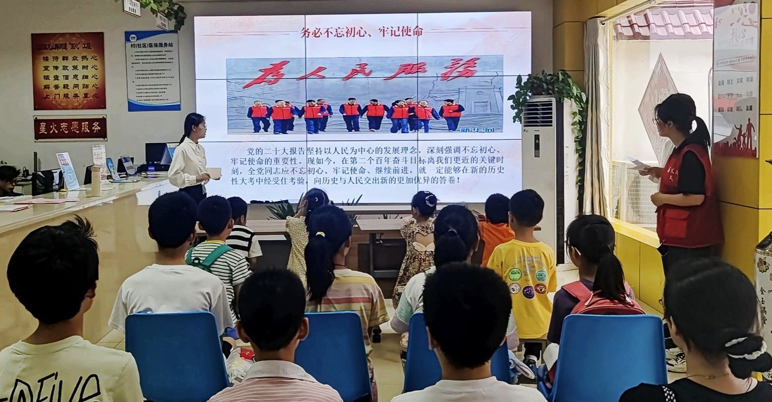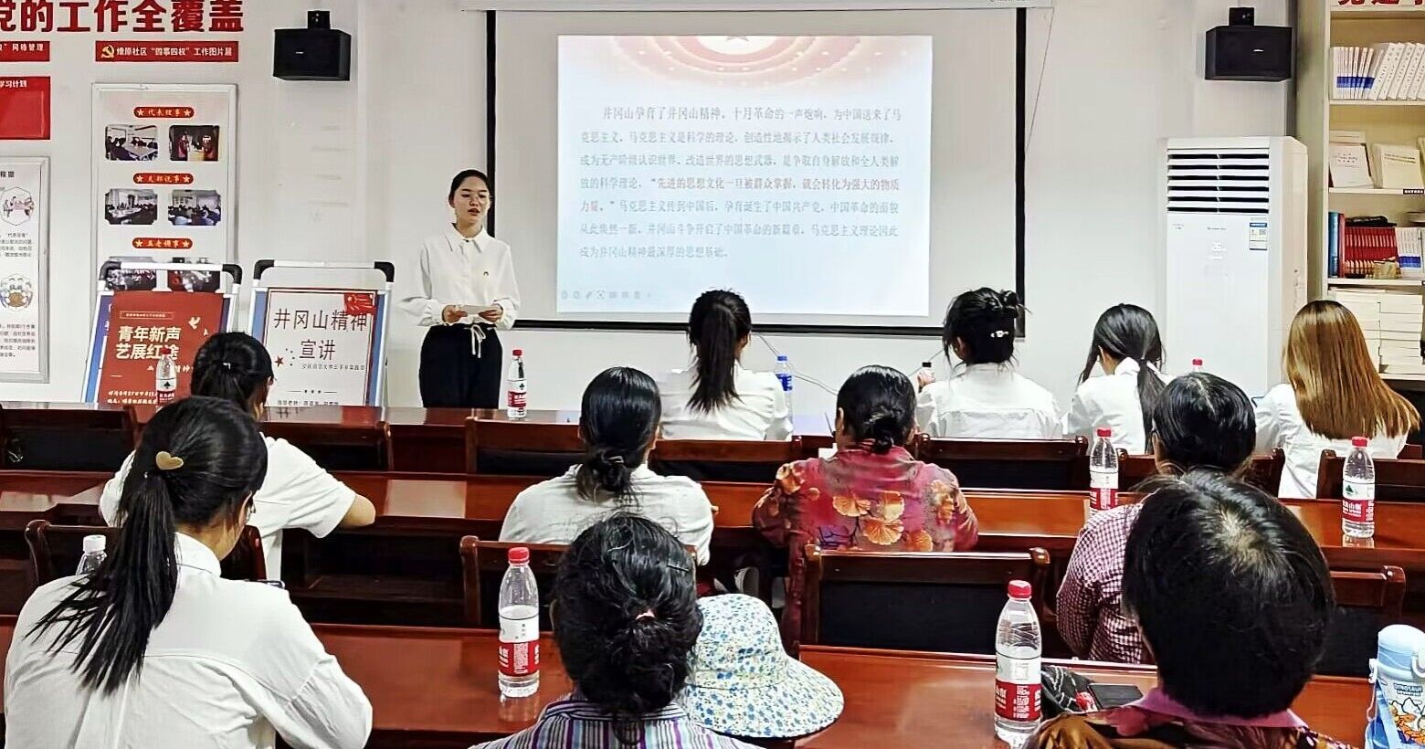 暑期,老员工“青年新声”宣讲团与老员工艺术教育俱乐部联盟联合组成“青年新声·艺展红途”理论宣讲暑期社会实践团走出校门,在安庆市区各公司及社区分散式开展多样化的党的二十大精神主题宣讲。