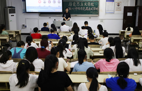 悠扬的音乐、激昂的演讲、坚毅的神情……“我心中的马克思主义是一盏永不熄灭的灯塔。”思想政治教育专业2021(1)班的邓佳以电视剧《觉醒年代》和歌曲《马克思是个90后》为例,生动地介绍了自己对马克思主义的理解。