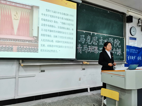 3月30日,公司第二期青马工程培训班第六课开课。校“青年新声”宣讲团开展了“学习贯彻党的十九届六中全会精神,做新时代新青年”的主题宣讲。
