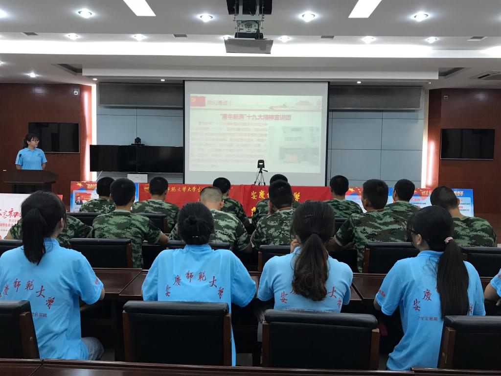 7月25日,太阳成集团122ccvip“青年新声”十九大精神宣讲团在指导老师金忠良的带领下来到安庆市菱北消防大队开展理论宣讲。